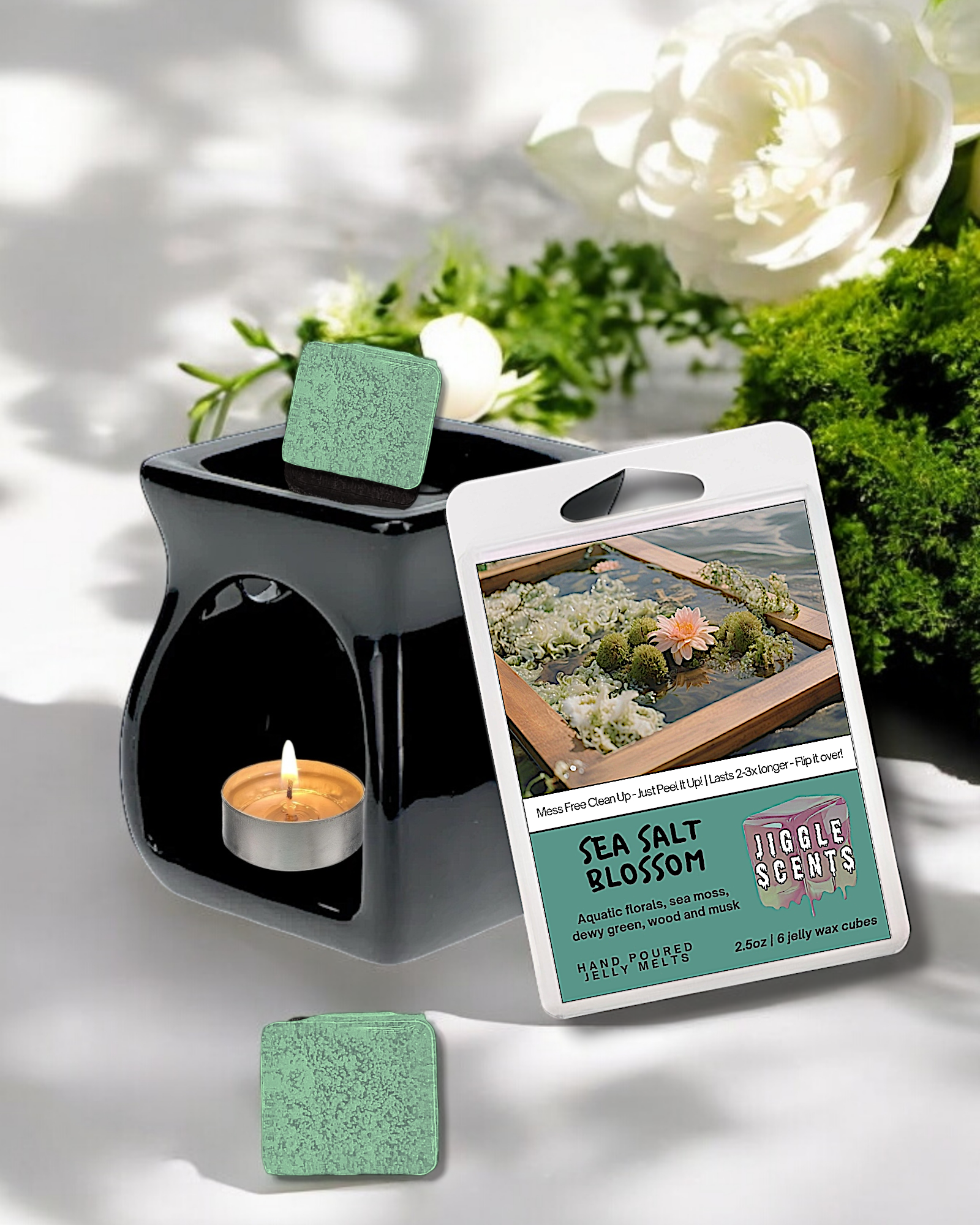 Jiggle Melts is gel wax mixed with fragrance oil. Simple sounding right? WRONG. The science and math behind getting the perfect formula, environmental conditions, storing, curing, even the spoons being used has all been a long journey to perfecting the scent throw and the right consistency in wax to give the jiggle. Gel wax is essentially polymer resin and mineral oil. The proper amount of both combined together and formulated into tough solid cubes that we then melt down then mix with color and scents.